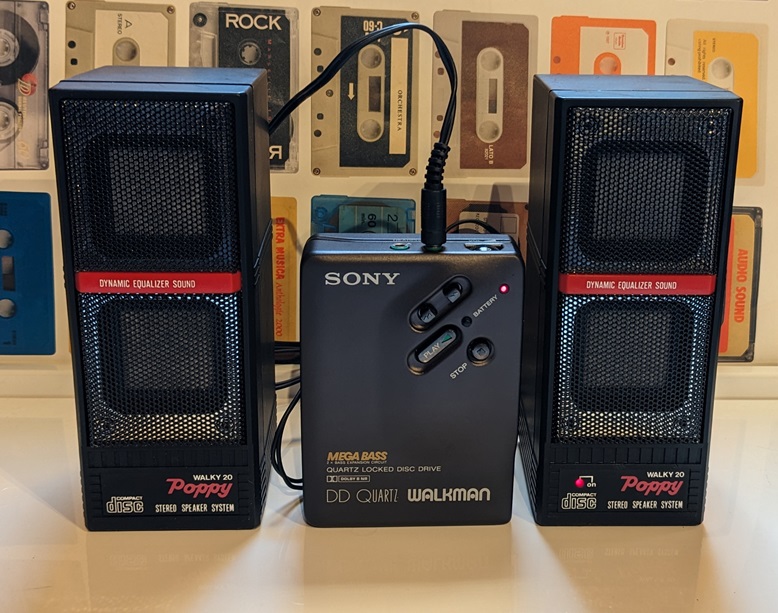 Bessere Speaker als Walkman! Hier der AB1 – ein Schwergewicht. Wiegt gefühlt dreimal so viel wie der Aiwa SC-05 oder 08… und wunderschön – der Hochtöner macht ein Farbspiel bei Lichteinwirkung.
